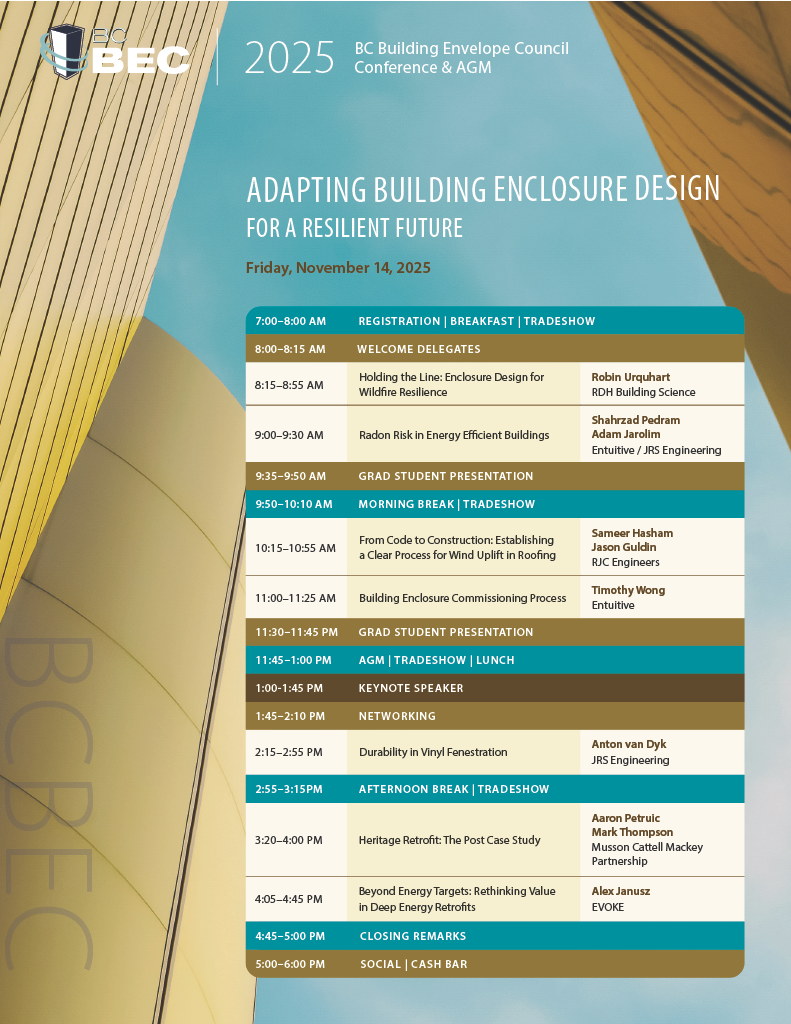 Click here to Book your room for the BC Building Envelope AGM and Conference 2025.
